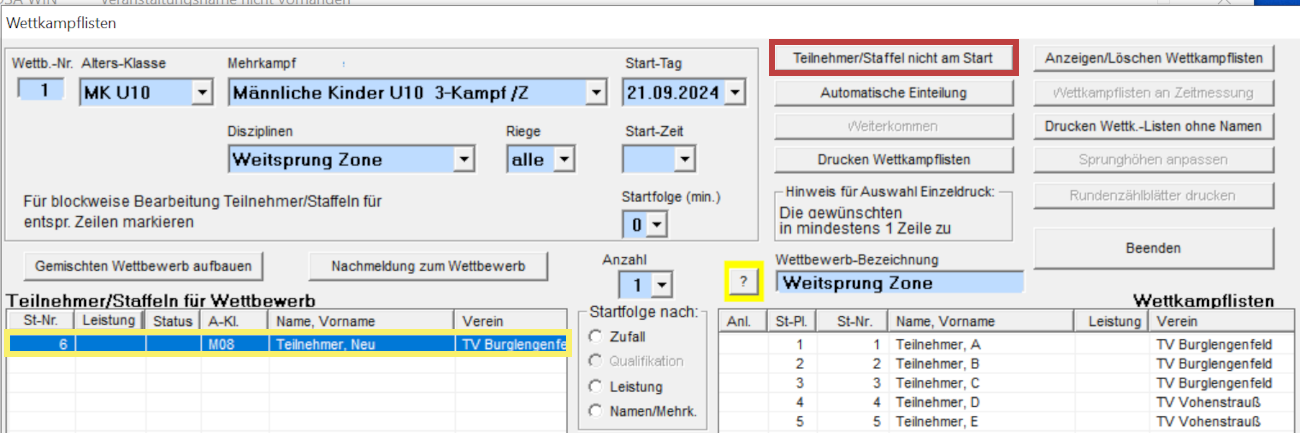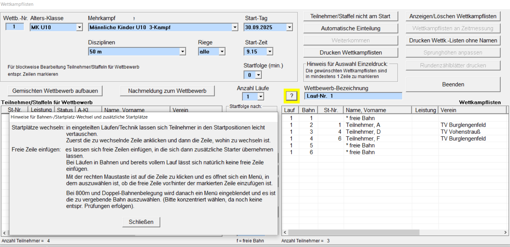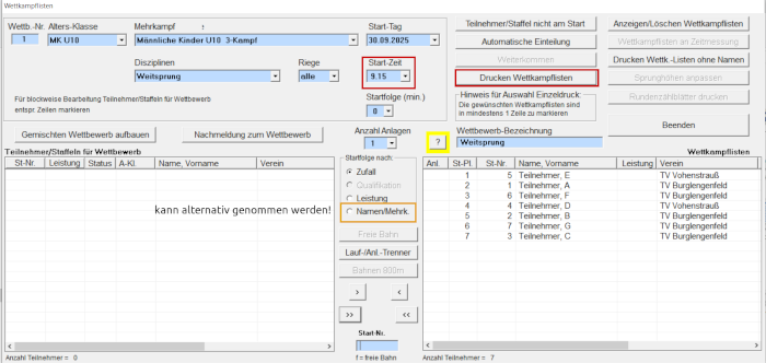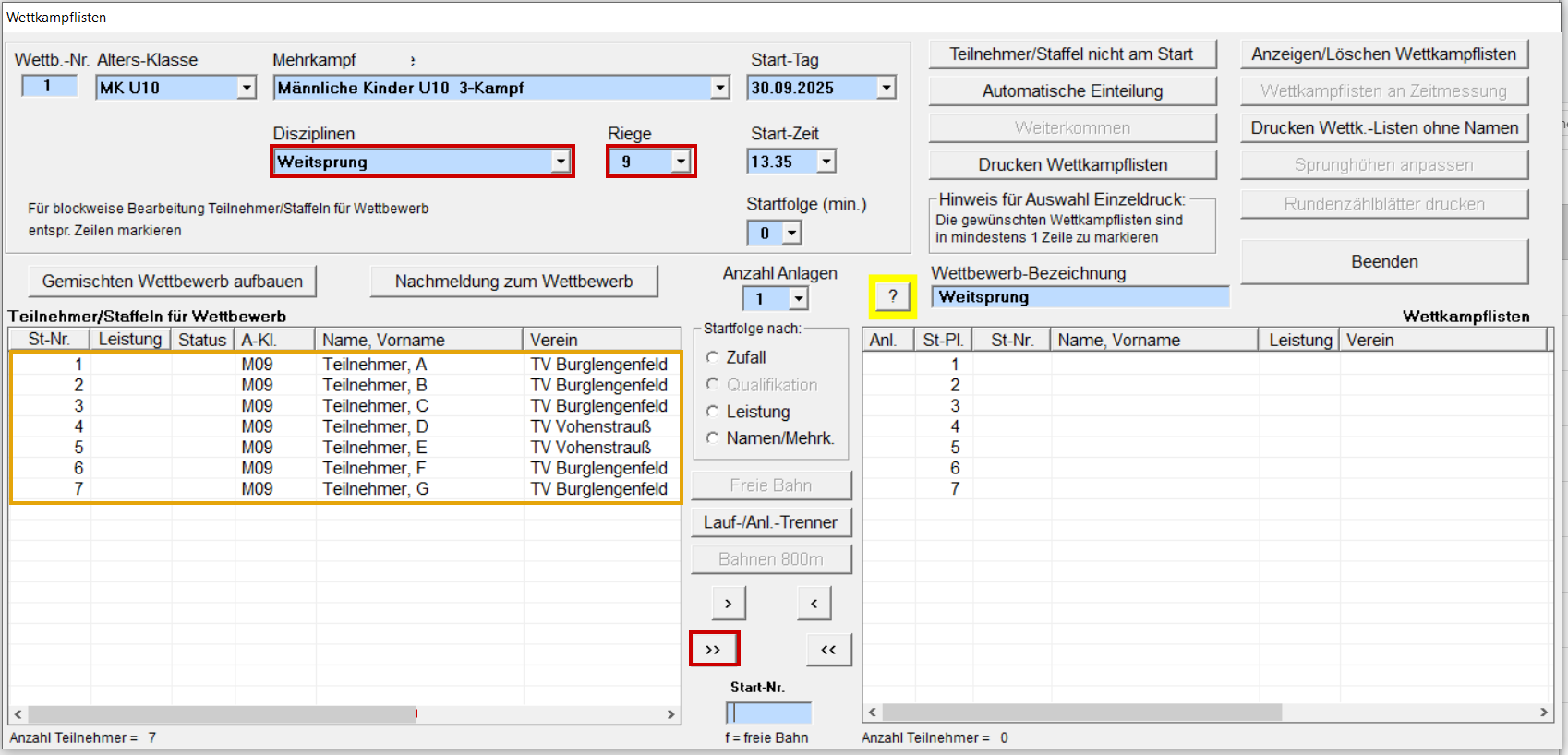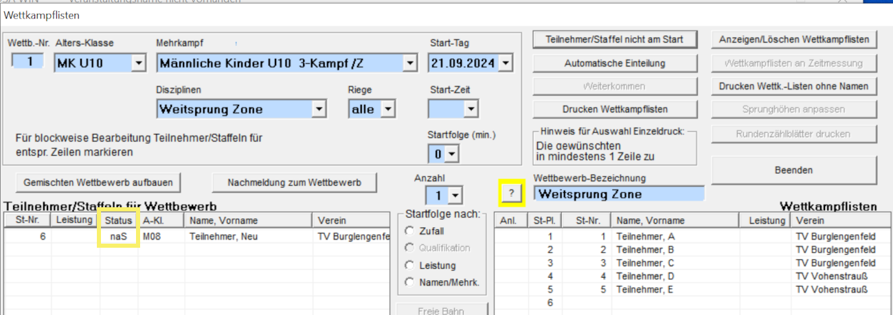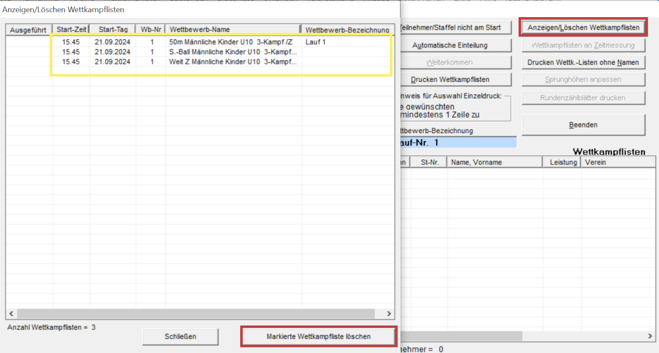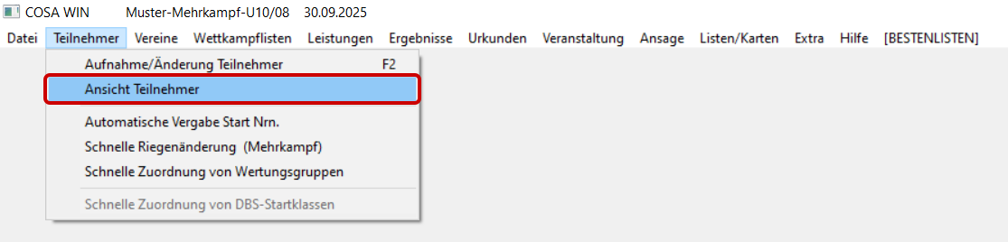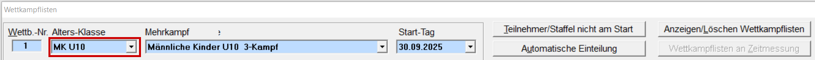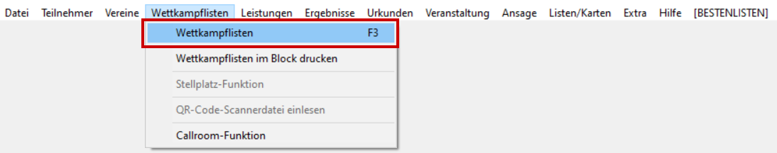 Wettkampflisten / "Wettkampflisten" aufrufen, alternativ F3 drücken.