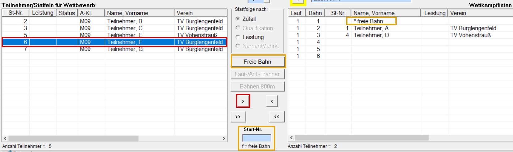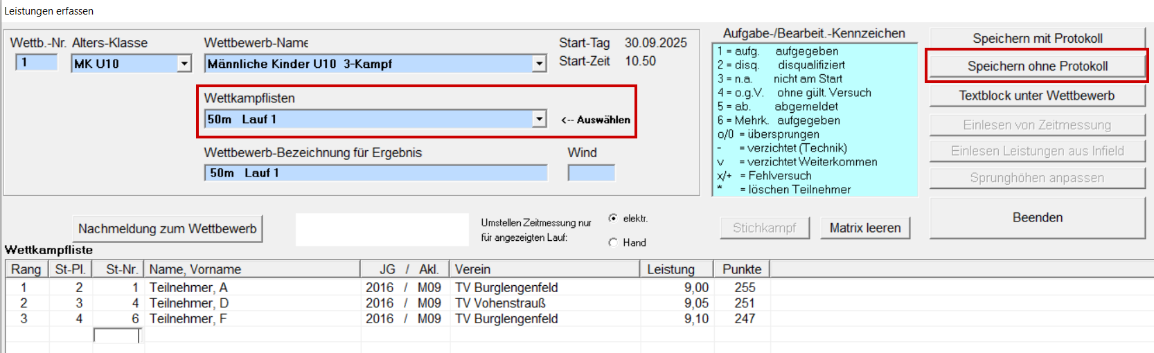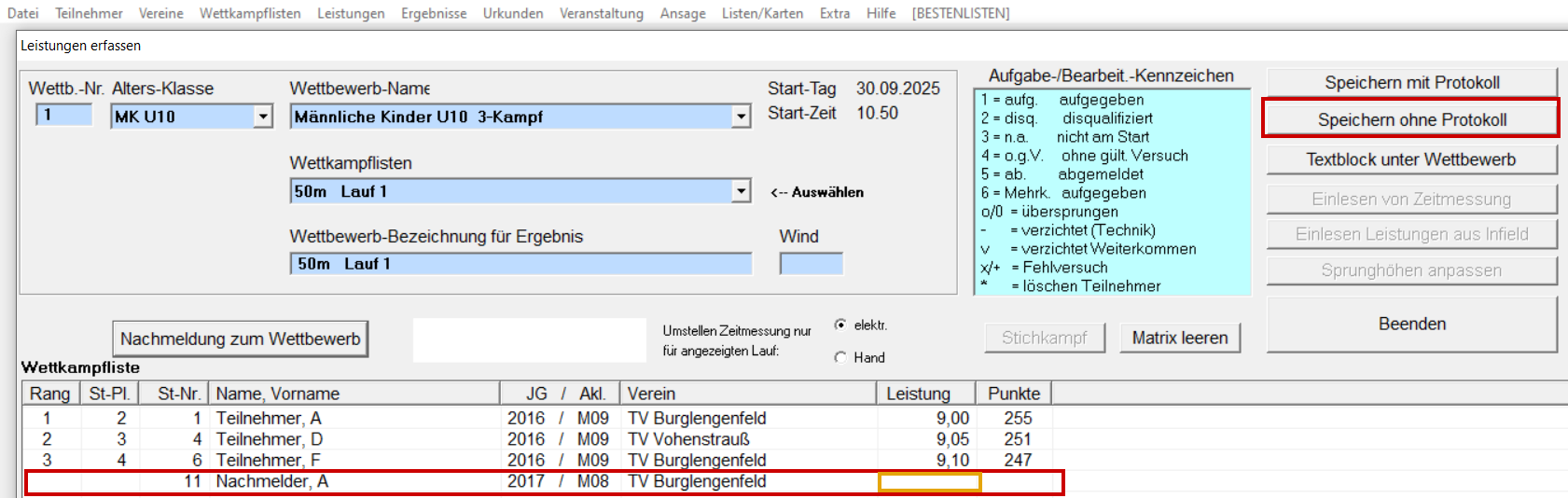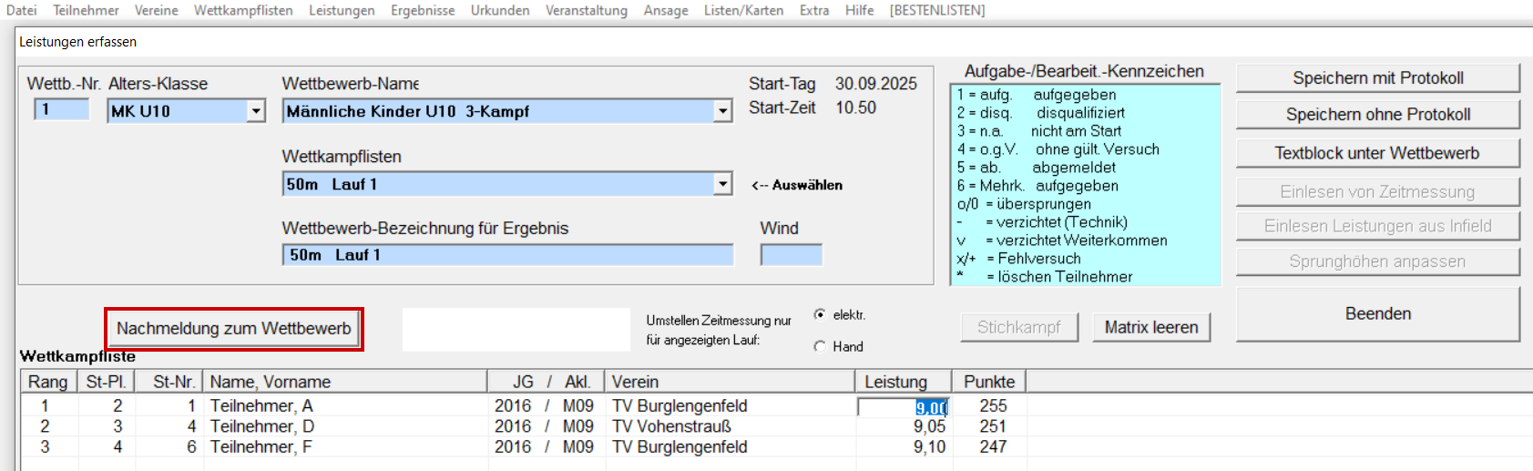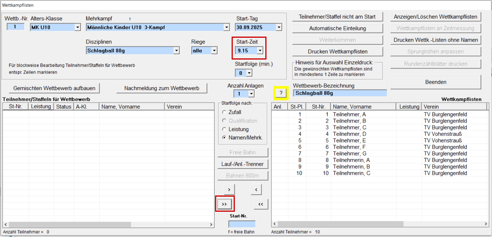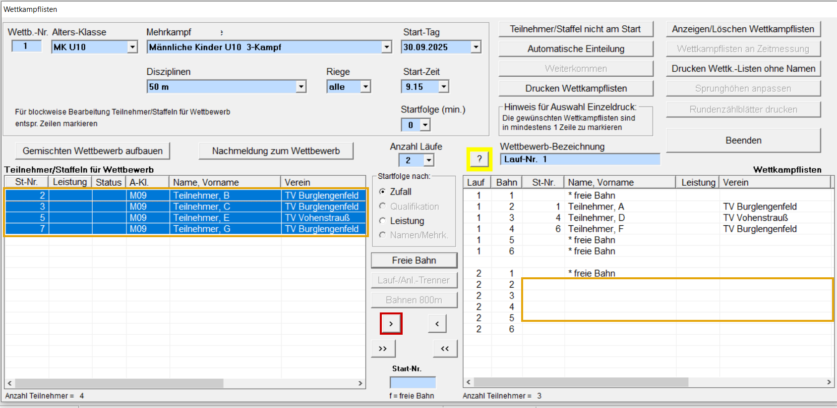 Wettkampflisten / "Wettkampflisten" aufrufen, alternativ F3 drücken.