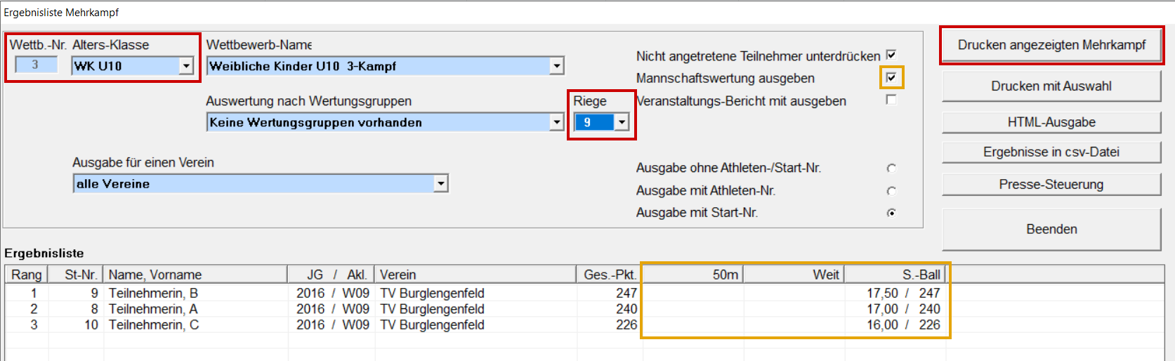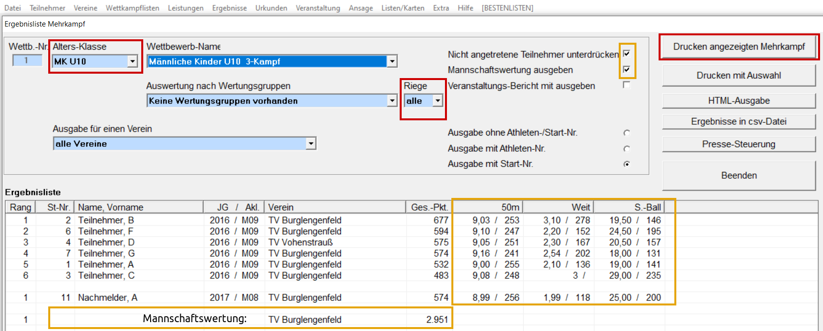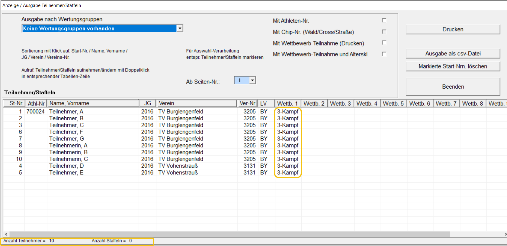 Zuerst alle gewünschten Altersklassen und dann die Wettbewerbe (z.B. 3-Kampf) markieren.