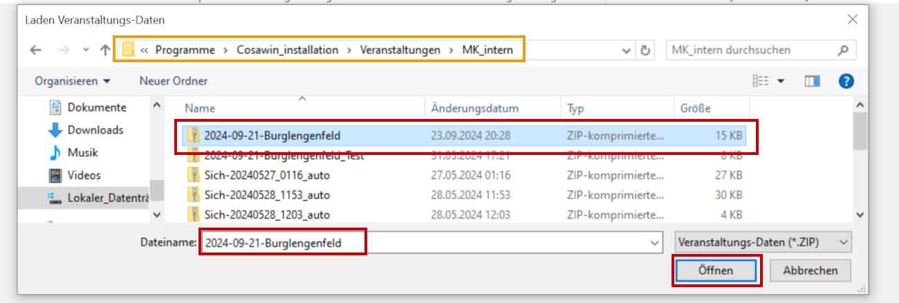 Ordner öffnen und gewünschte ZIP-Datei markieren, mit "Öffnen" abschließen.