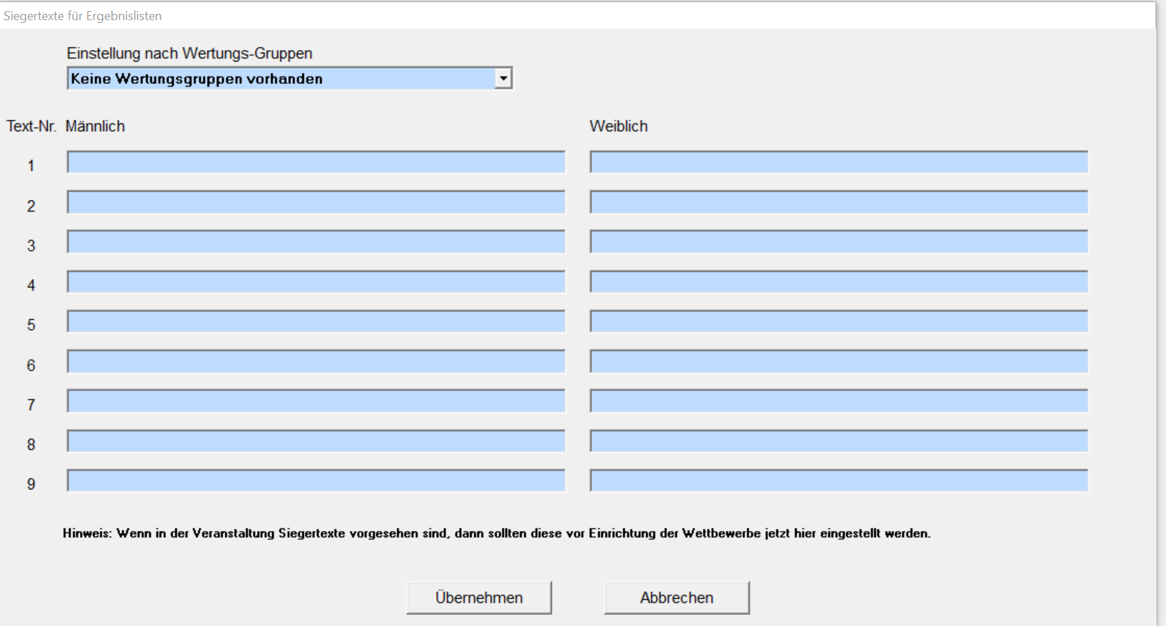 Hier können Siegertexte eingegeben werden z.B. 1. Oberpfalzmeisterin.