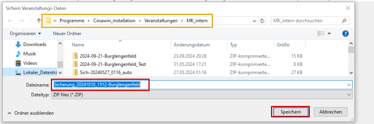 Ordner auswählen, Dateiname evtl. ändern und "Speichern"