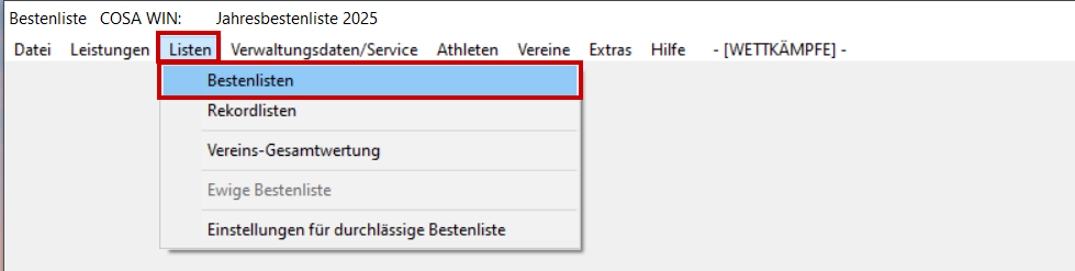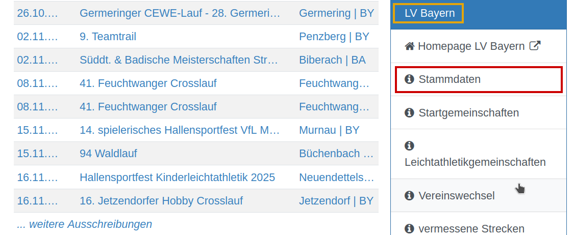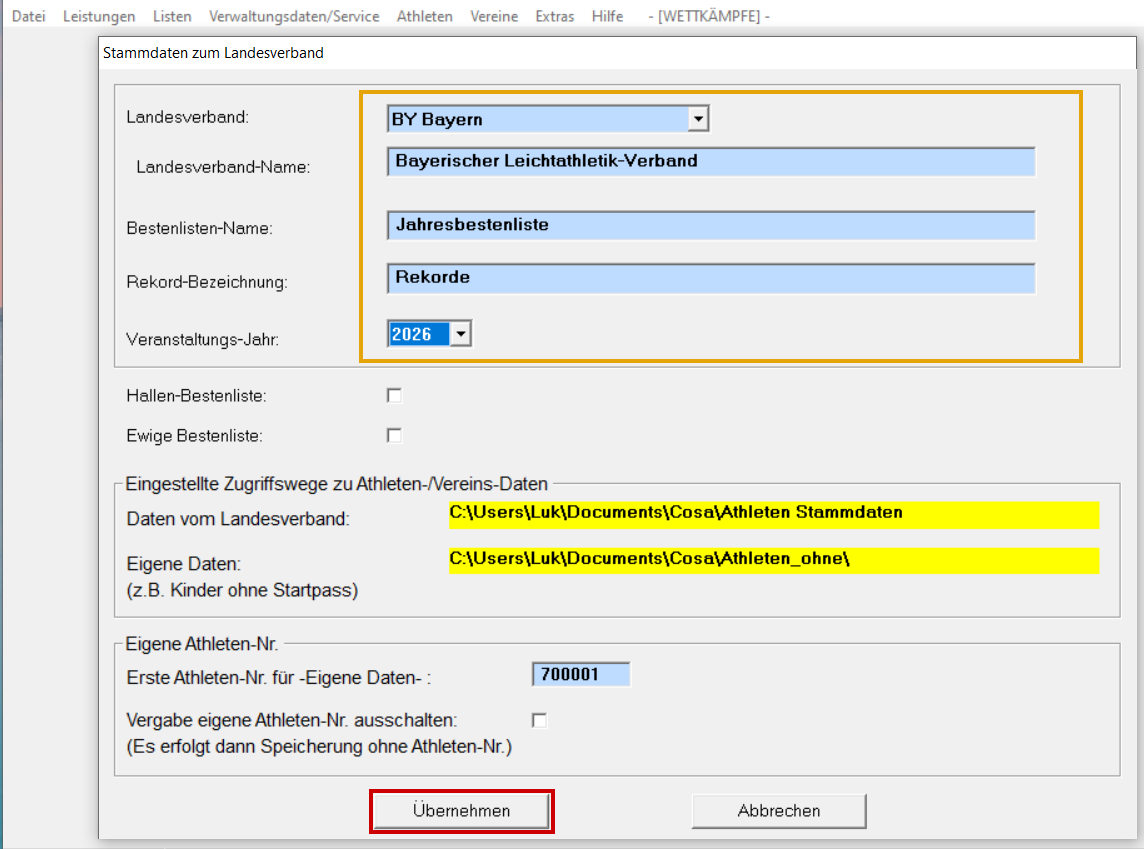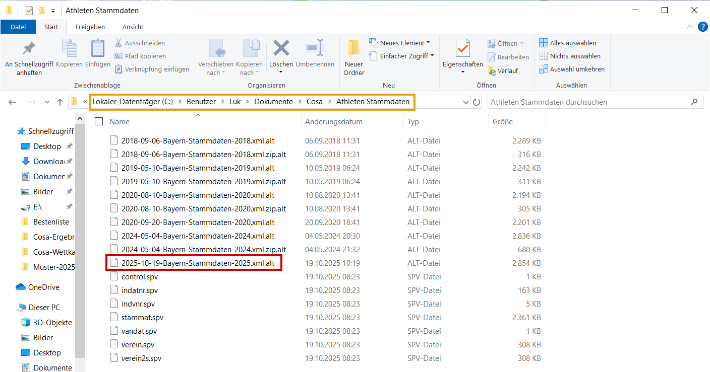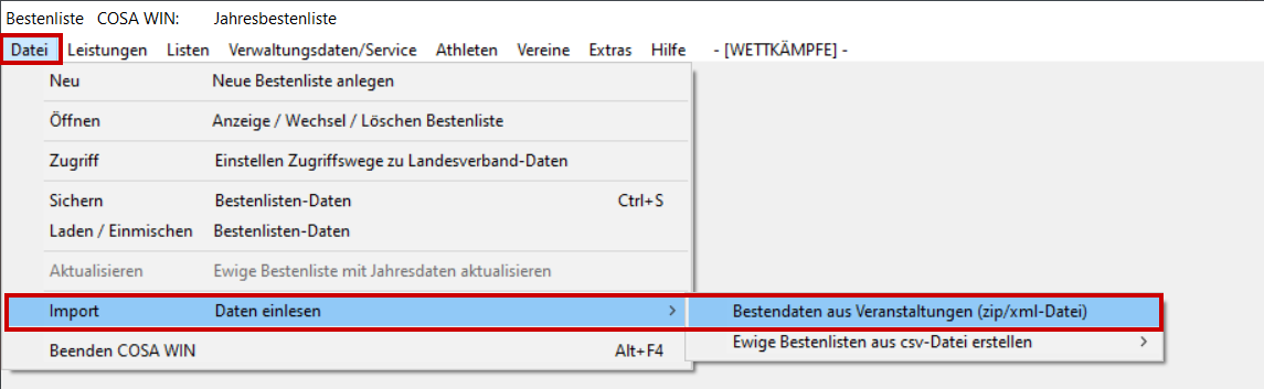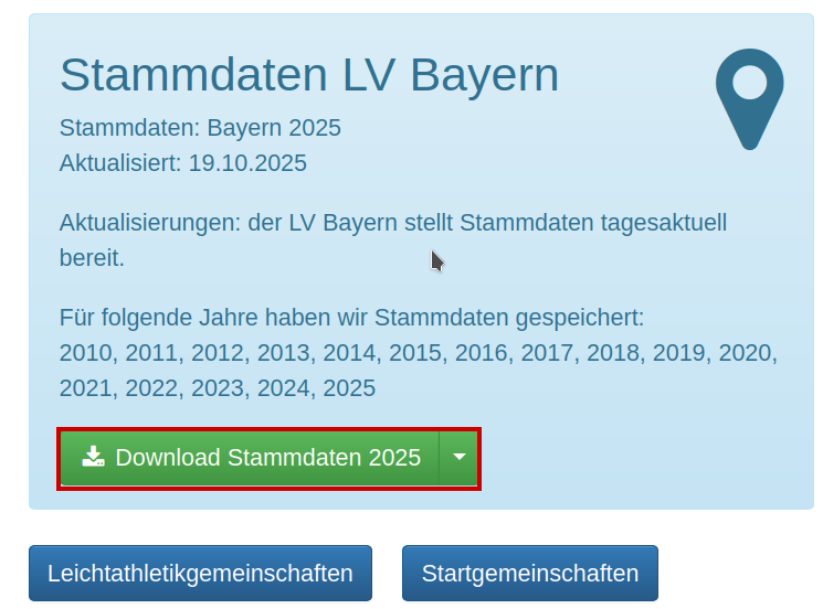 LADV öffnen und Landesverband Bayern auswählen. Unter LV Bayern, Stammdaten audwählen. Stammdaten ZIP-Datei runterladen. ZIP-Datei in den Ordner entpacken, wo der "Zugriff" festgelegt ist. Beim nächsten öffnen von Cosawin-Bestenliste, werden die Stammdaten automatisch aktuailisiert.